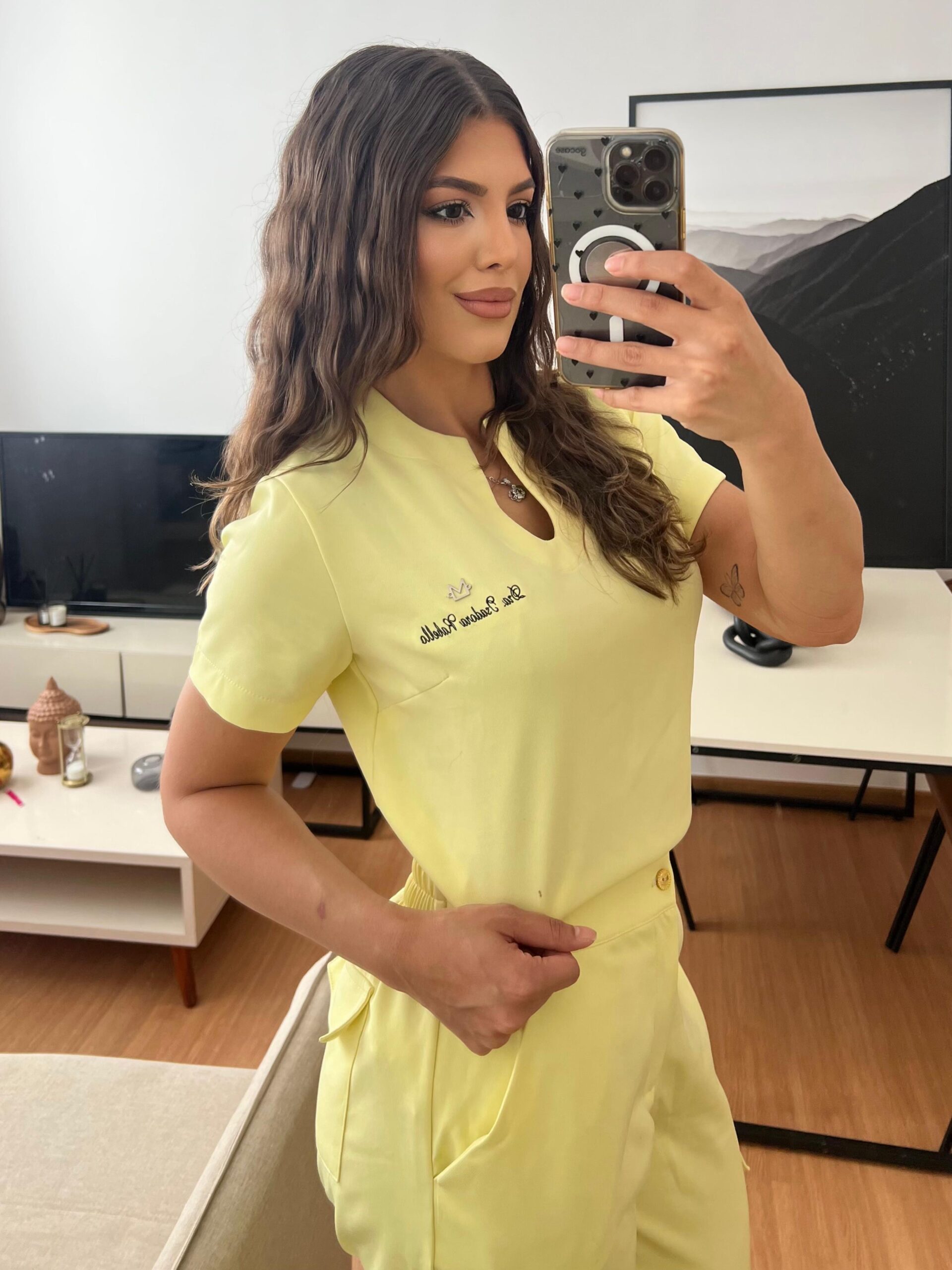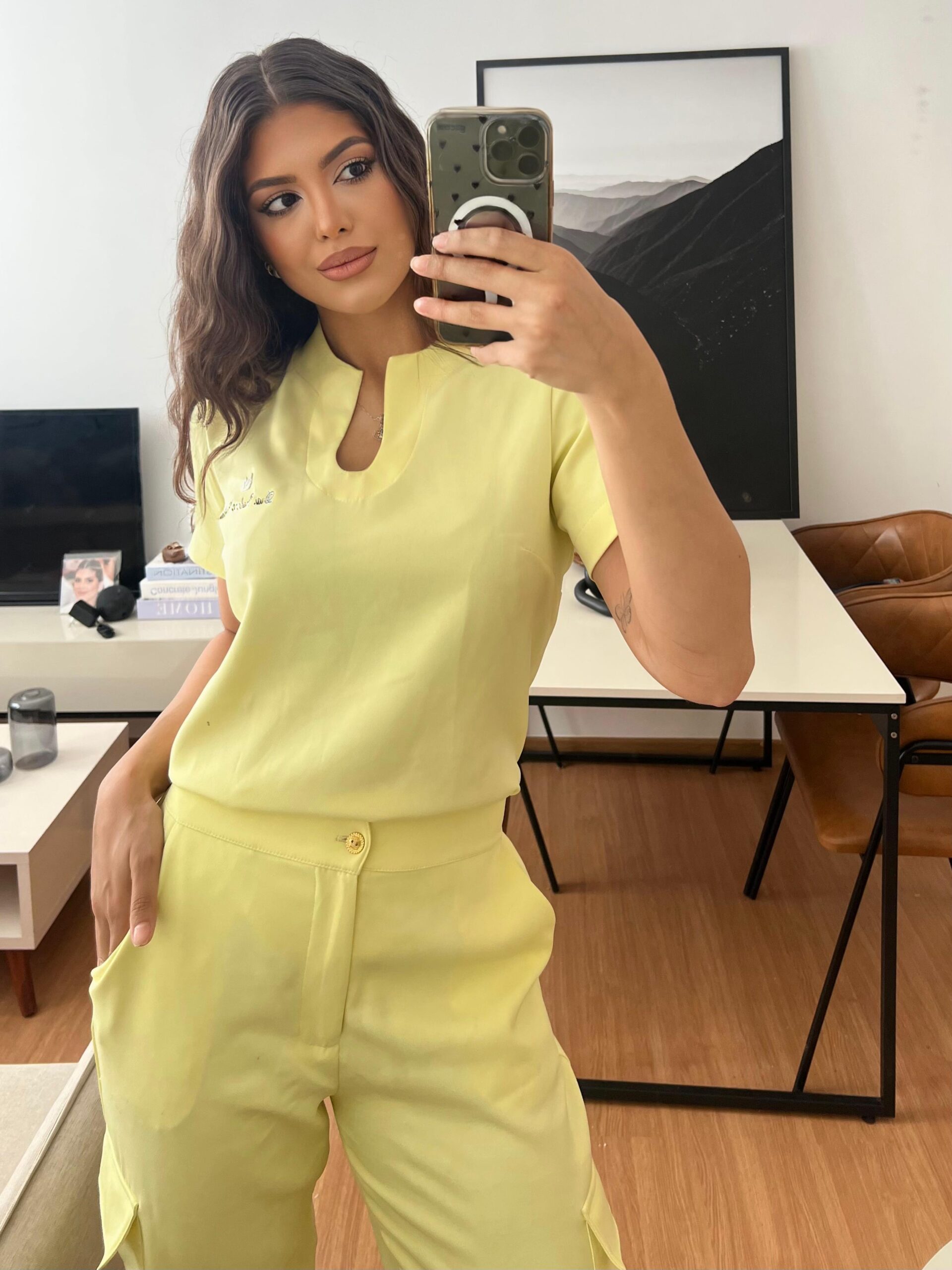 Tecido: Gabardine com elastano (fresquinho, confortável e não amarrota)