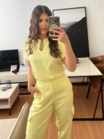 A blusa possui uma abertura no decote, e é ajustável atrás tornando a modelagem impecável!